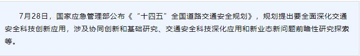 “十四五”全國道路交通安全規(guī)劃發(fā)布 將全面深化交通安全科技創(chuàng)新應用